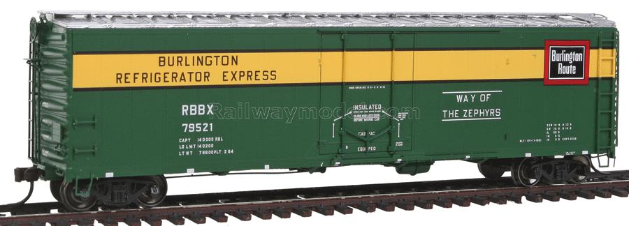 50' изотермический товарный вагон AAR Fruit Growers Express. Серия Master. Принадлежность Chicago, Burlington & Quincy Refrigerator Express RBBX #79521
