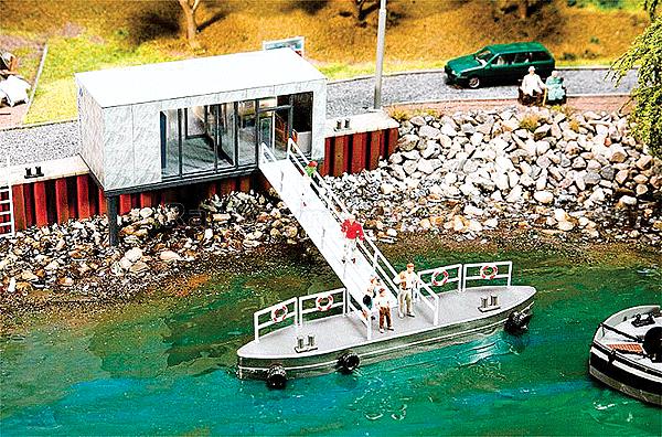 Pier Ticket Booth w/Landing. Набор для сборки (KIT), пластмассовые детали -- Building 3-3/4 x 1-9/16 x 2-15/16" 9.5x4x7.4см. Dock 4-3/4x3/4x3/4";12x2x2см.