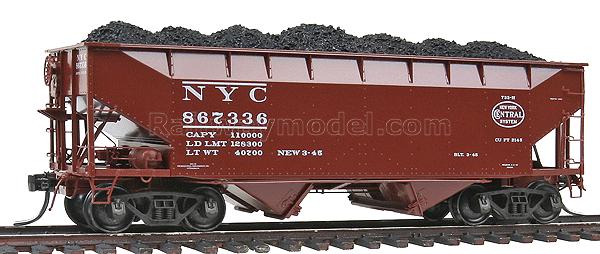 Стандартный 50-тонный двухбункерный открытый хоппер тип AAR с грузом угля. Принадлежность New York Central #867336