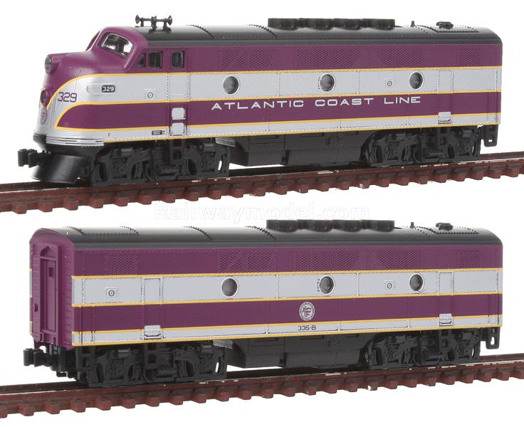 Тепловоз EMD F2 - две секции A-B, с двумя головными прожекторами. Принадлежность Atlantic Coast Line #329, 335B (purple, silver)