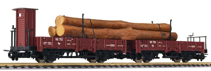 Сцеп из двух платформ с грузом брёвен, тип RSE 752 Hw и RSE 756 Hw. Принадлежность Частная жд. Эпоха III