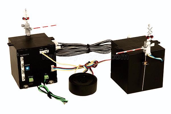 Переезд с работающими мигающими сигналами на светодиодах и звуком при приближении поезда. В комплекте все необходимое для легкой установки и подключения к любым рельсам.