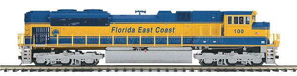 Тепловоз EMD SD70M-2. Принадлежность Florida East Coast #100. Установлен универсальный цифровой декодер со звуком Proto-Sound 3, работающий как с аналогом, так и с цифрой. В кабине - фигурки машиниста и помощника, свет в прожекторах и номерных таблицах, освещение в кабине. Минимально рекомендуемый радиус 18" (457 мм). Может использоваться как на рельсах высотой 2.1 так и 2.5 мм.