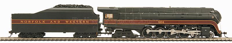 Паровоз 4-8-4 класс J. Принадлежность Norfolk & Western #604. Установлен дымогенератор, а также универсальный цифровой декодер со звуком Proto-Sound 3 с оригинальной системой синхронизации дыма и звука Puffing ProtoSmoke System, работающий как с аналогом, так и с цифрой. Модель выполнена из металла. В комплекте прилагается жидкость для дымогенератора. Рекомендуется минимальный радиус 18 дюймов (457,2 мм).