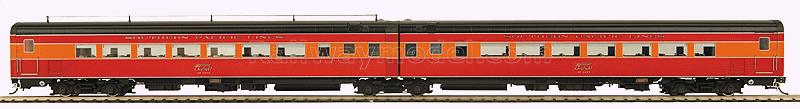 Пассажирские вагоны SP Daylight ##2474, 2473. Рекомендуется минимальный радиус 22 дюйма (559 мм).
