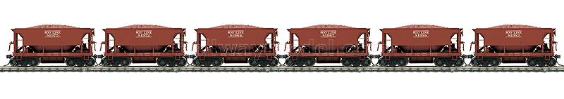 Набор из шести 70-тонных вагонов для перевозки руды (т.н. вагоны “Ore Jennies”) с грузом. Принадлежность Soo Line