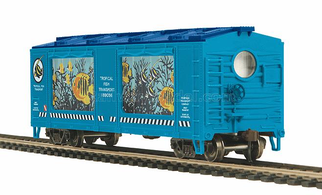 Серия 81 (“Imagination and Fun”), специальный вагон с анимацией. Tropical Fish. При установки вагона на рельсы включается подсветка и в окнах вагона начинают плавать тропические рыбы, создавая полную иллюзию, что Вы смотрите в настоящий аквариум. Анимацию можно выключить с помощью выключателя на днище вагона. Прекрасный и оригинальный подарок как ребенку, так и взрослому коллекционеру.