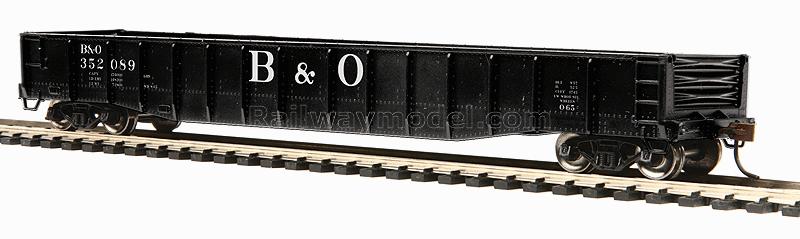 70-тонная гондола для обслуживания различных металлургических и машиностроительных заводов, для перевозки длинномерных, крупнотоннажных грузов и материалов. Принадлежность Baltimore & Ohio #352089 (black, Large B&O)