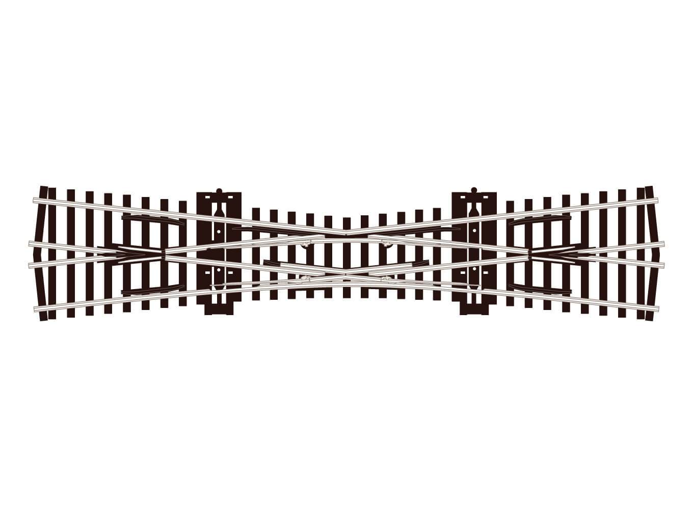 Стрелка частично перекрестная, радиус 610 мм 12°, длина 249 мм. С одного пути состав может двигаться только прямо, с другого пути состав может двигаться прямо или в сторону. Высота рельса 2,5 мм (код 100).