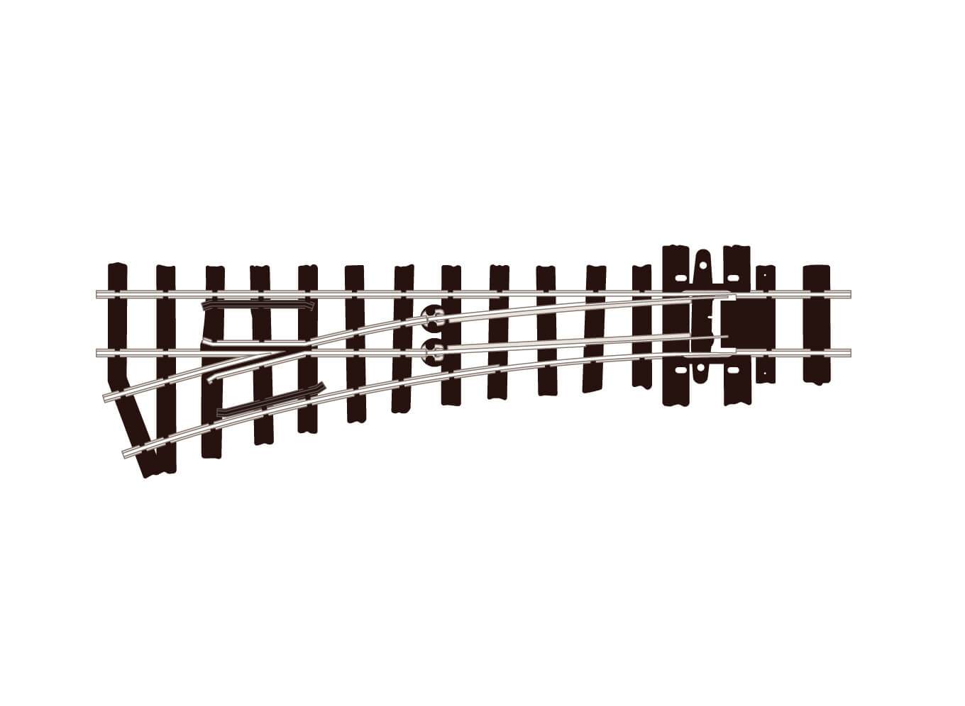 Стрелка узкоколейная левая, радиус 304 мм 9.5°, длина 125 мм. Совместима с серий PECO OO-9 Setrack. Высота рельса 2,03 мм (код 80).