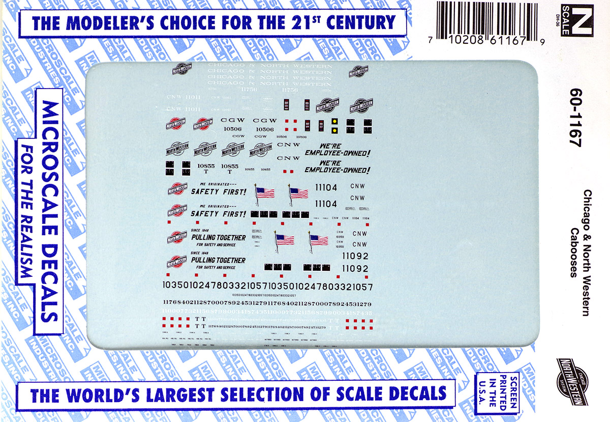 Декали масштаба N. Для Chicago & North Western Caboose. Производство Microscale Decals, артикул 60-1167. Новые, в упаковке.