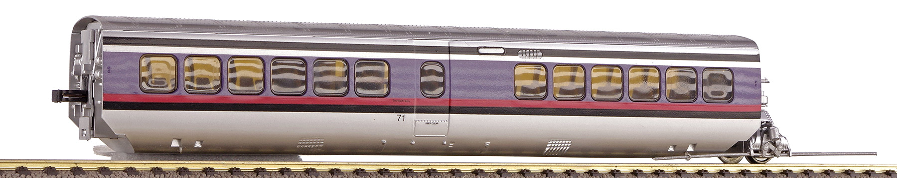 Комиссионная модель. Пассажирский вагон состава TurboCoach IC-36/37. Принадлежность Penn Central #70. Дополнительный вагон состава TurboTrain - RAPIDO #200002. Производство Rapido. Артикул по каталогу Rapido 200201. В коробке. Фотография выполнена с продаваемой модели.