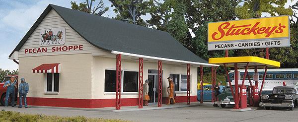 Полностью собранное здание классического американского придорожного магазина-заправки Stuckey's, размер 15 x 9.2 x 6.9 см. Заводская сборка.